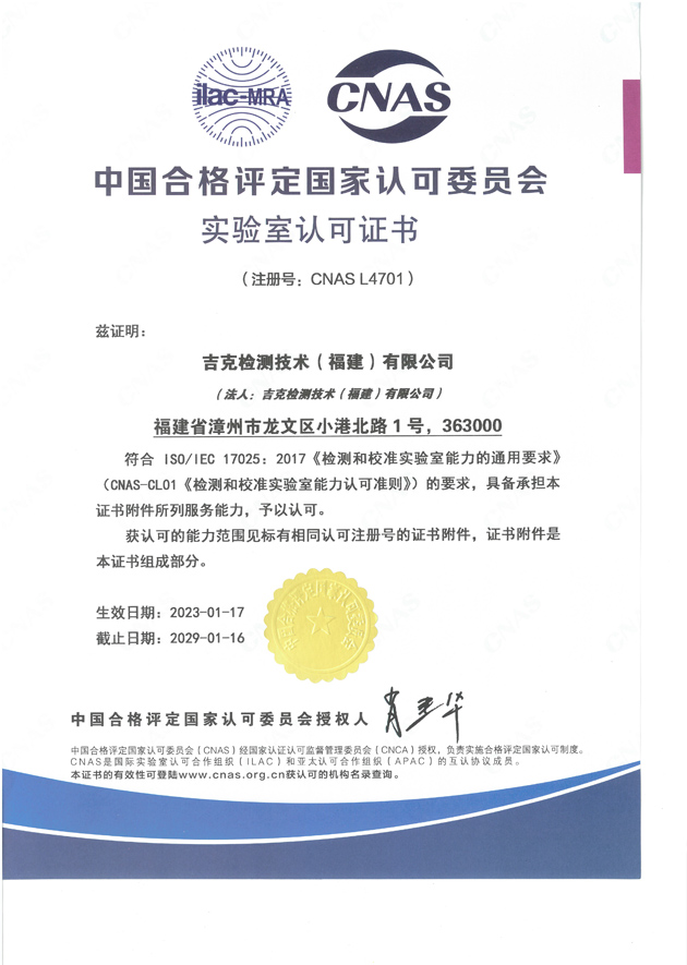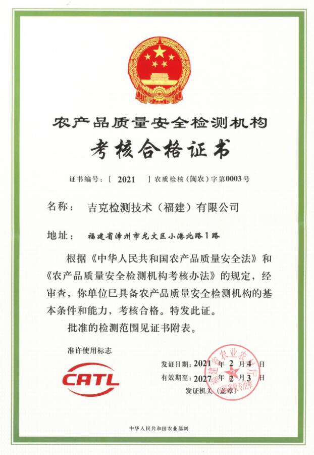 吉克檢測(cè)技術(shù)(福建)有限公司,位于福建省漳州市龍文區(qū)小港北路1號(hào),于2019年8月注冊(cè)成立,是一家獨(dú)立的第三方檢測(cè)公司。公司已經(jīng)通過(guò)檢驗(yàn)檢測(cè)機(jī)構(gòu)計(jì)量認(rèn)證(CMA)、農(nóng)產(chǎn)品質(zhì)量安全檢測(cè)機(jī)構(gòu)資質(zhì)認(rèn)證(CATL),獲得中國(guó)合格評(píng)定國(guó)家認(rèn)可委員會(huì)(CNAS)認(rèn)可。公司本著“嚴(yán)謹(jǐn)、規(guī)范、高效、協(xié)作”的原則和對(duì)客戶及社會(huì)高度負(fù)責(zé)的精神,充分利用本公司優(yōu)質(zhì)的檢測(cè)環(huán)境、先進(jìn)的檢測(cè)設(shè)備和專(zhuān)業(yè)的技術(shù)人員,第一時(shí)間為客戶提供科學(xué)、公正、準(zhǔn)確的檢驗(yàn)檢測(cè)報(bào)告。 公司實(shí)驗(yàn)室面積1100多平方米,儀器設(shè)備兩百多臺(tái)(套),固定資產(chǎn)一千多萬(wàn)元,在職員工31人,技術(shù)人員中的中高級(jí)職稱及同等能力人數(shù)占60%以上。我們的服...